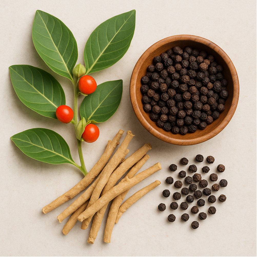 Our simple two-ingredient formula combines Organic Ashwagandha (Withania somnifera)—an ancient adaptogen clinically shown to reduce stress, promote healthy cortisol levels, support mental clarity and restful sleep—with Organic Black Pepper (Piper nigrum) to dramatically enhance absorption by up to 2000% and provide antioxidant protection. Together, they help your body adapt to daily stressors, calm an overactive mind, and elicit the natural balance that modern life so often disrupts. The result is a calmer, more centered you—able to handle life's challenges with greater ease, clearer focus, and more resilience. Calm+ provides a foundation for sustainable well-being.