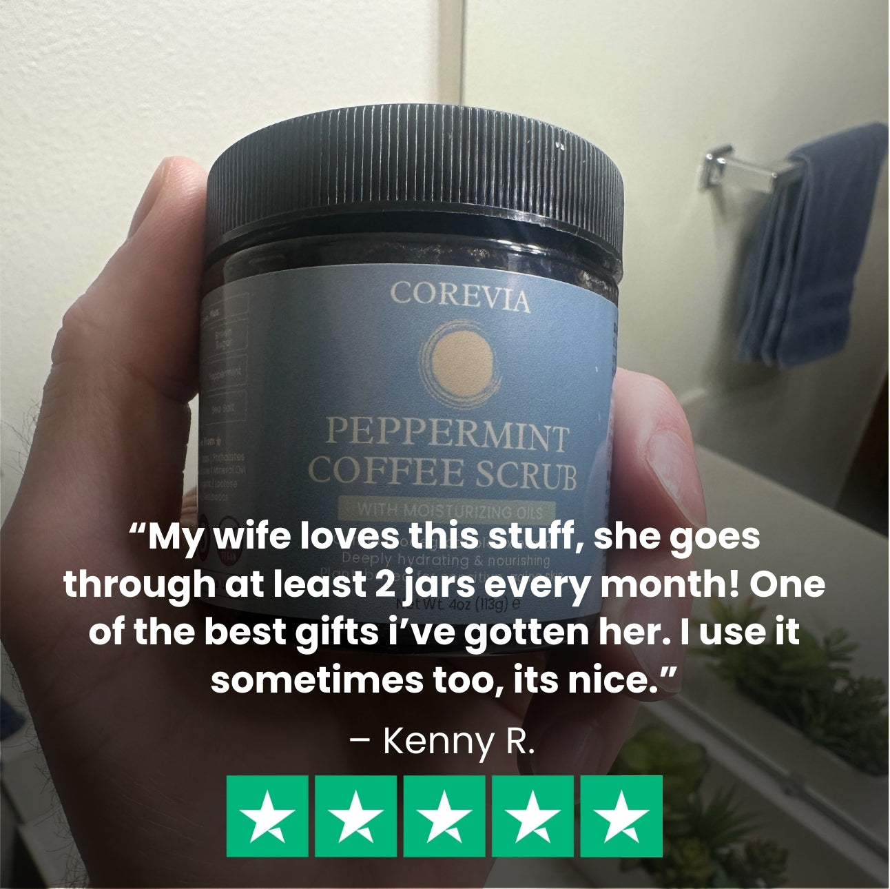 Our luxurious formula starts with Micro-Roasted Coffee (Coffea arabica), packed with antioxidants that promote youthful-looking skin and reduce dullness. Combined with Organic Brown Sugar and Sea Salt, it delivers triple-action exfoliation that buffs away dead skin without harshness. Infused with Coconut Oil, Castor Oil, and Peppermint Essential Oil, it smooths, deeply hydrates, and awakens your skin while revealing a soft, luminous glow that looks polished and feels impossibly supple.
