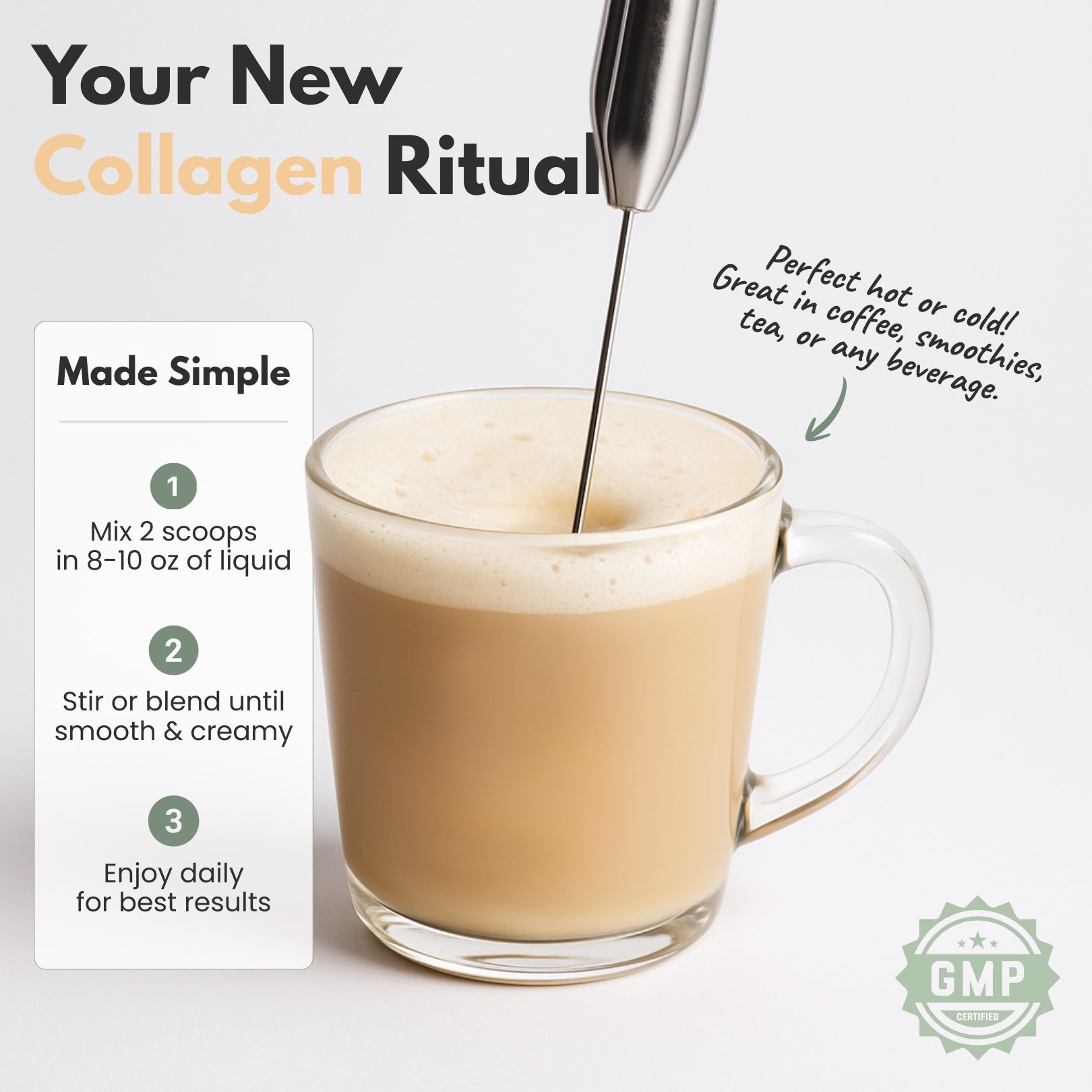 The result: a body that feels energized, comfortable, and resilient—youthful skin, flexible joints, steady focus, and a happy gut. Just mix into your morning coffee, smoothie, or tea for total wellness in every sip.